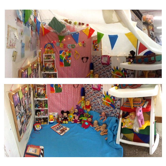 An installation made up of toys and things. Thinking about the childhood art of den-making. Fun, nostalgic, but is it comforting or creepy?